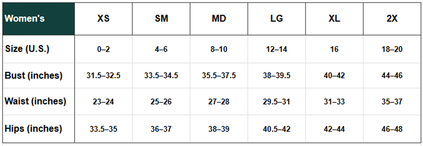 Standard U.S. Apparel Size Chart